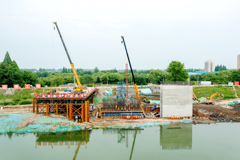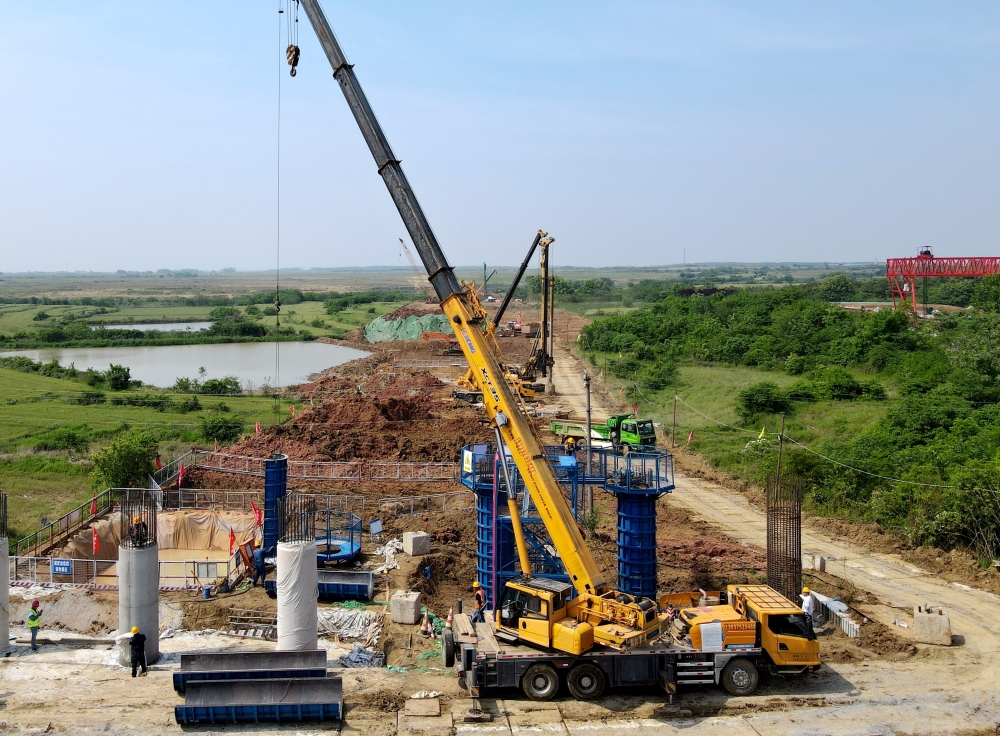 蕪湖正值梅雨季節(jié),面對青弋江日漸上漲的水情和項目趕在汛期高峰期到來前完成主墩出水的任務,S334峨山路東延伸新建二期工程項目全體職工和參建班組堅守在施工現(xiàn)場第一線,持續(xù)高效推動項目建設。