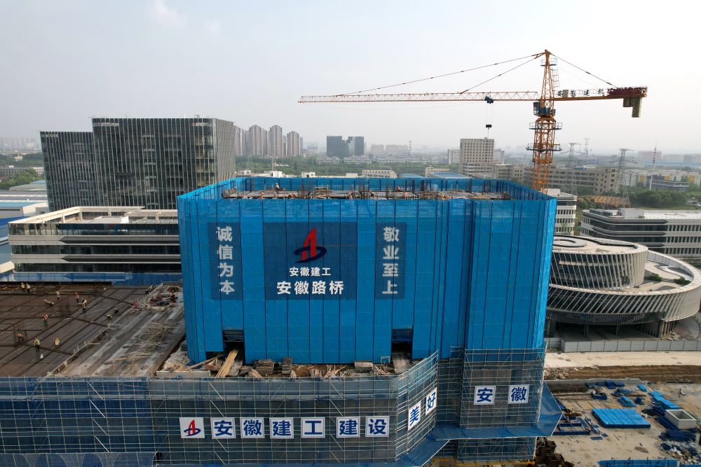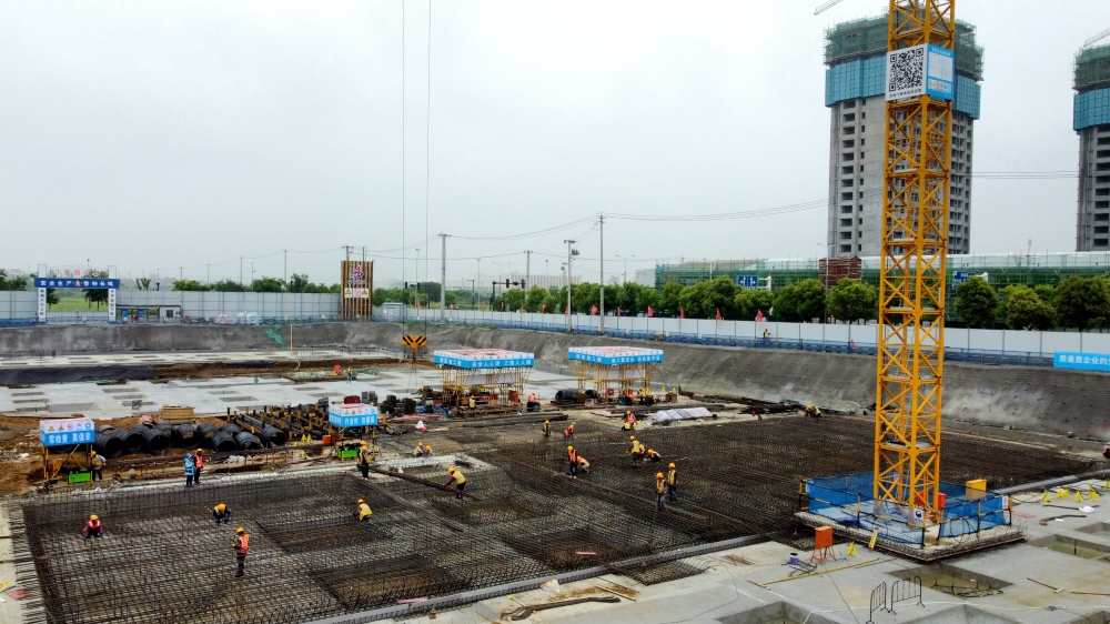 合肥新橋國際機場綜合交通中心項目施工現(xiàn)場,50余名管理人員、700余名工人、27臺各類施工機械緊密配合,全力推進項目合新六城際鐵路先行工程底板及交通中心負一層頂板施工,同時搶抓完成地鐵S1線非影響區(qū)最后一塊頂板。