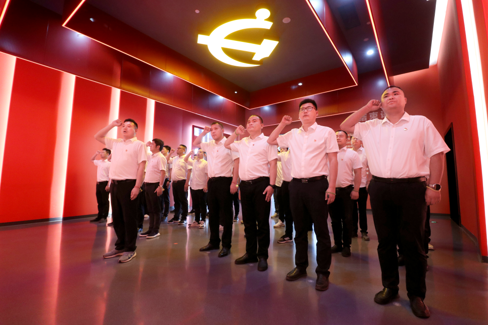 在宣誓廳內(nèi),全體黨員還重溫了入黨誓詞。