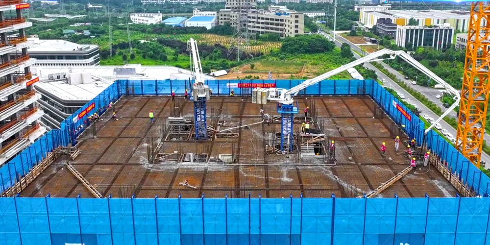 夏日炎炎,在合肥桃花科創(chuàng)產(chǎn)業(yè)園項目超高層建筑施工現(xiàn)場,超高層360°混凝土全自動液壓智能布料機器人卻“不懼”酷暑,揮舞著“長臂”大顯身手。