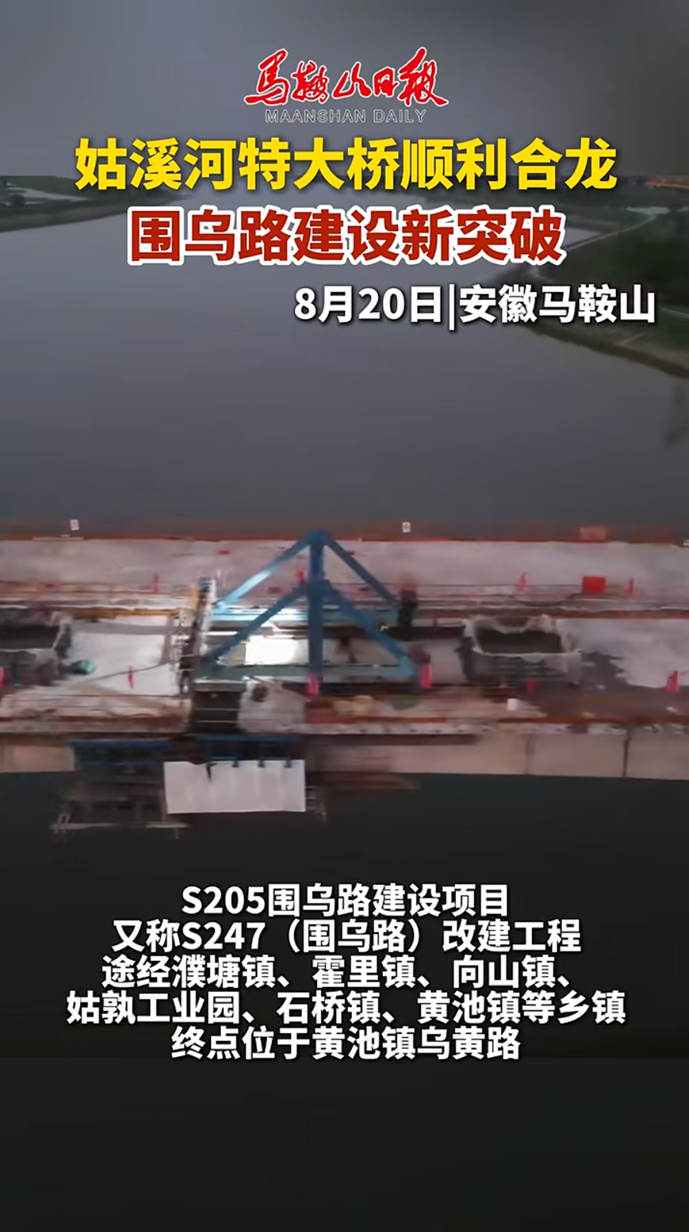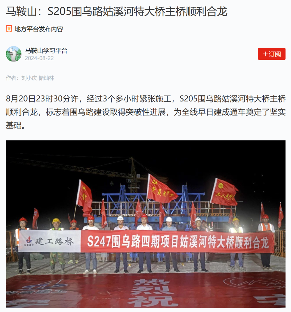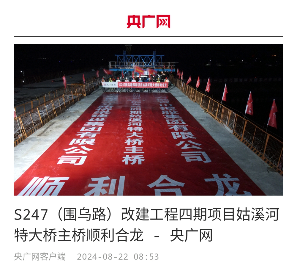 【名媒聚焦】央廣網(wǎng)、學(xué)習(xí)強國等主流媒體聚焦S247(圍烏路)改建工程四期姑溪河特大橋主橋順利合龍