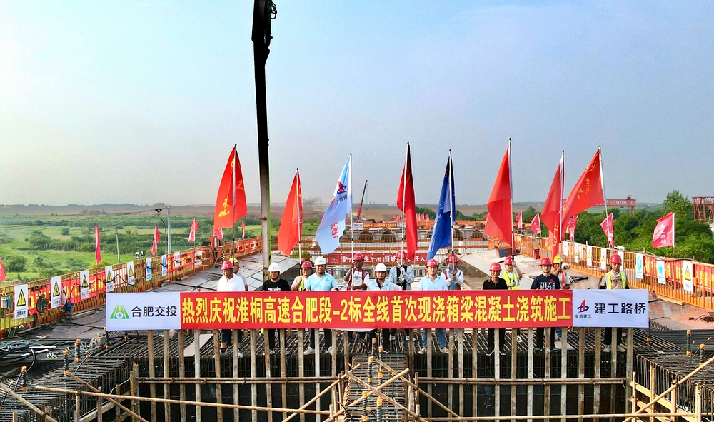【路橋“競(jìng)”行時(shí)】淮桐高速合肥段路基2標(biāo)全線首次現(xiàn)澆箱梁澆筑完成