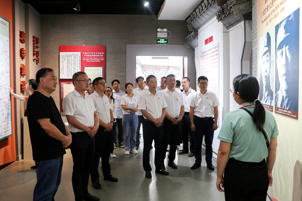 在巖寺新四軍軍部舊址紀(jì)念館,參加活動(dòng)人員學(xué)習(xí)了解了新四軍在各個(gè)階段的重大事件、戰(zhàn)斗歷程以及整編的重大意義,感受革命先烈的豐功偉績(jī)及老一輩革命家為理想艱苦奮斗、流血犧牲、奮勇前進(jìn)的偉大精神。全體黨員在革命先烈的銅像前,面對(duì)黨旗,重溫入黨誓詞。