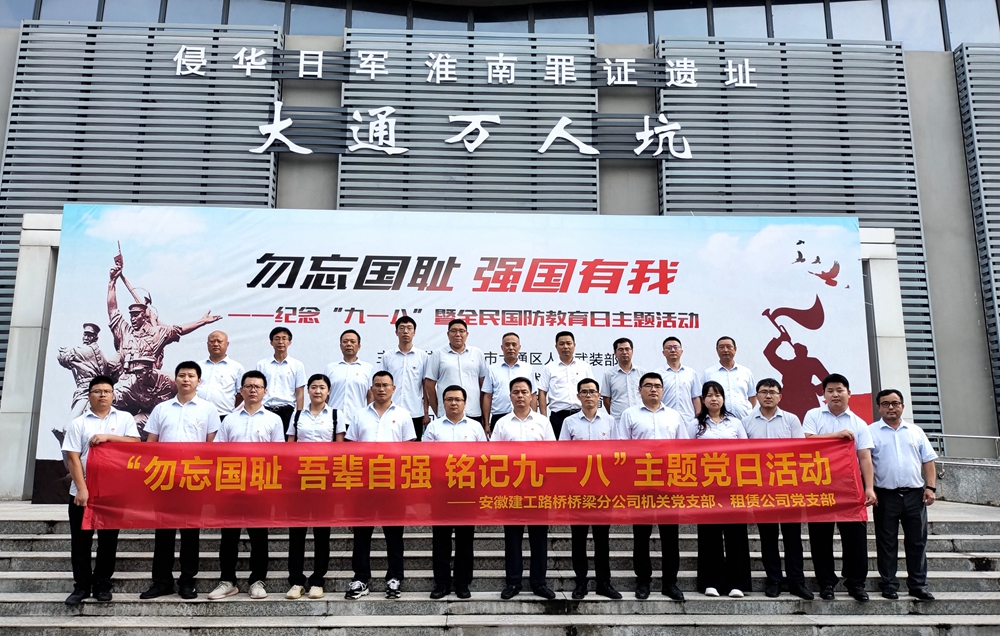 9月18日,橋梁分公司機(jī)關(guān)黨支部和租賃公司黨支部到淮南市大通萬人坑教育館開展“勿忘國恥 吾輩自強(qiáng) 銘記九一八”主題黨日活動(dòng)。