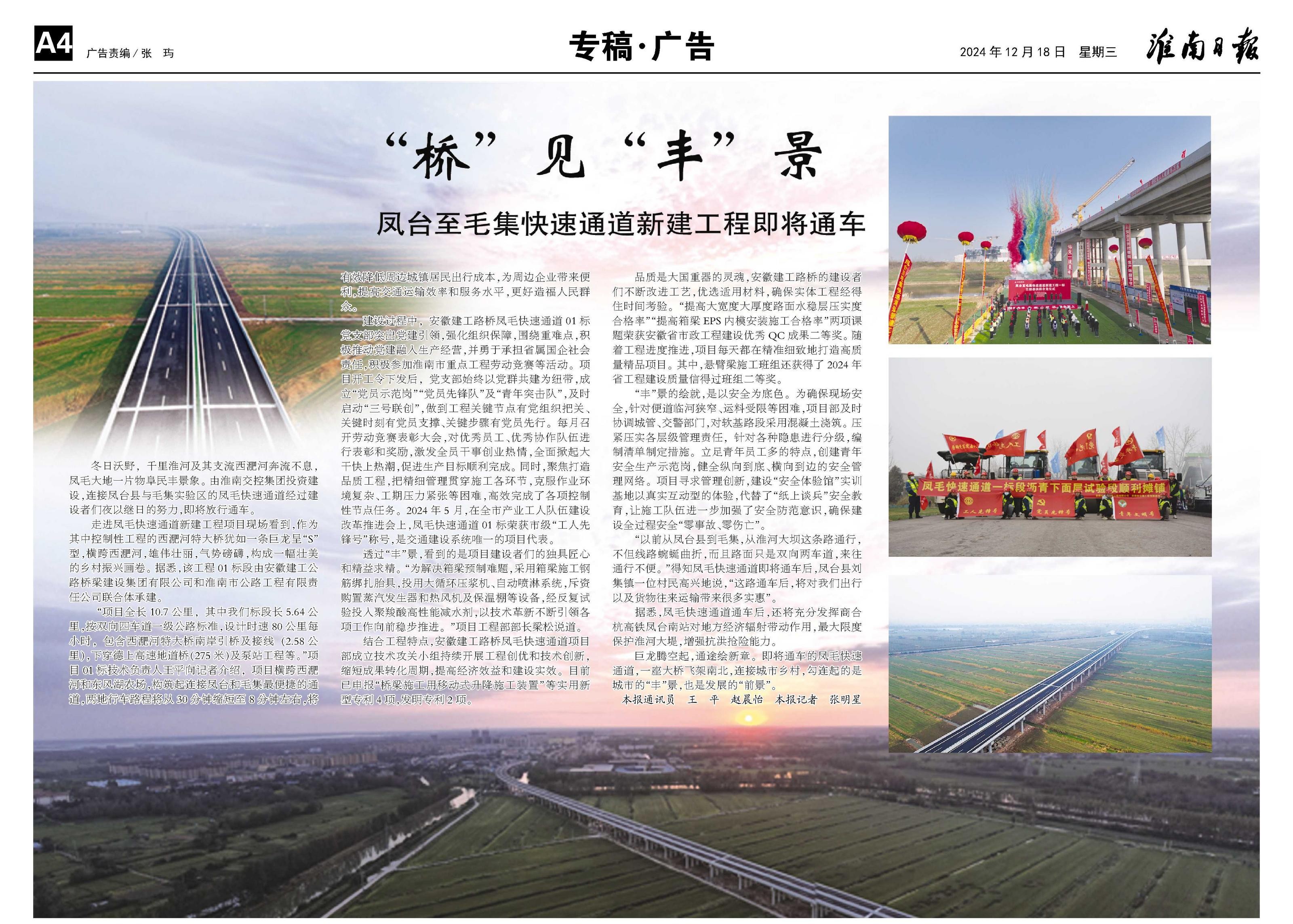 【名媒聚焦】淮南日?qǐng)?bào):“橋”見“豐”景——鳳臺(tái)至毛集快速通道新建工程即將通車
