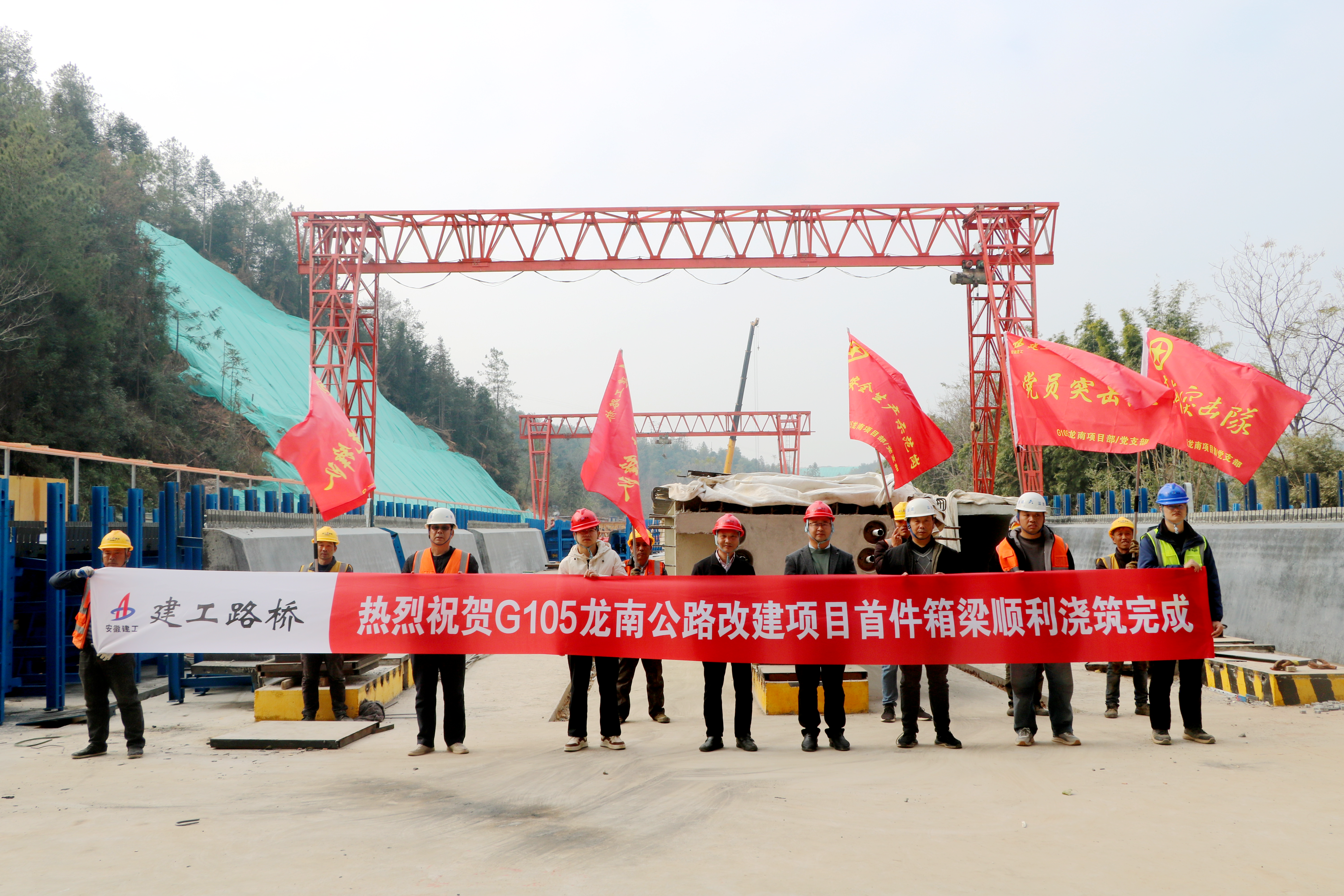 【路橋“競(jìng)”行時(shí)】G105龍南改建項(xiàng)目首片預(yù)制箱梁澆筑完成