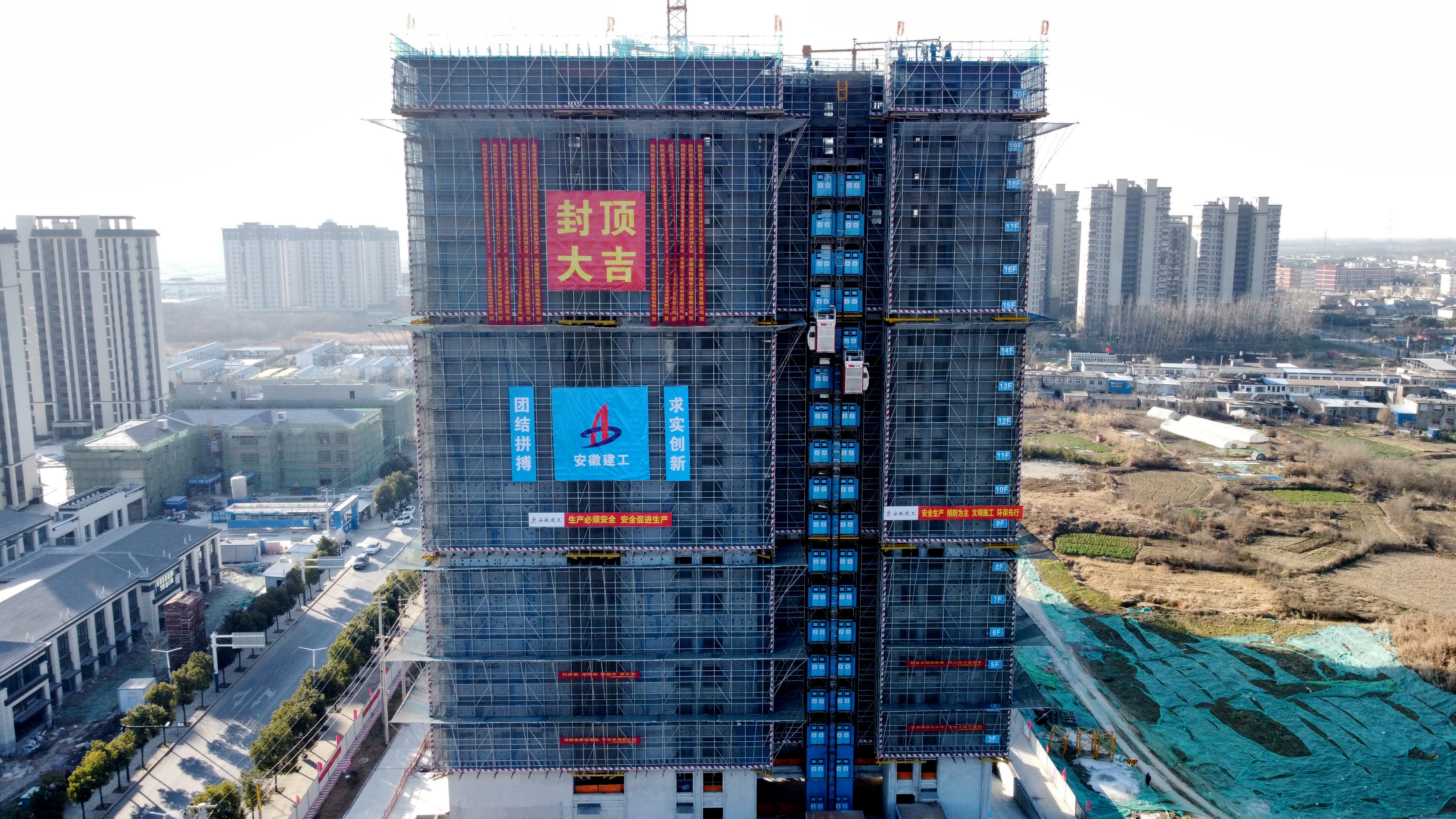 項目占地面積約20.5畝,總建筑面積38434平方米,裝配率50%,其中2#樓建筑高度72.65米。自開工以來,項目團隊科學規(guī)劃,克服多重困難,以“六天一層”的建設速度,歷時5個月圓滿實現(xiàn)主體結(jié)構(gòu)封頂目標。