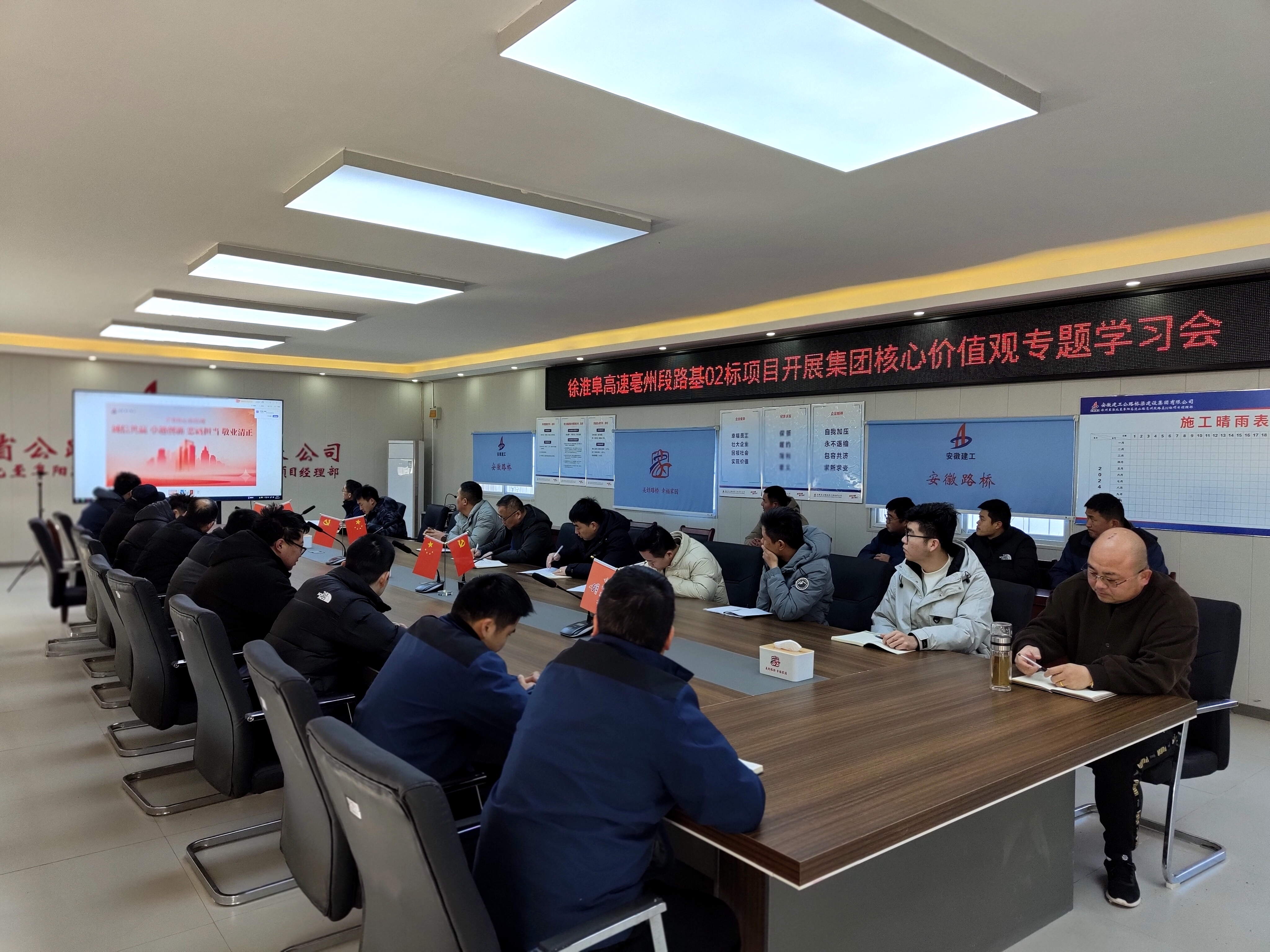 徐淮阜高速亳州段路基02標開展集團核心價值觀專題學習,并進行研討交流。