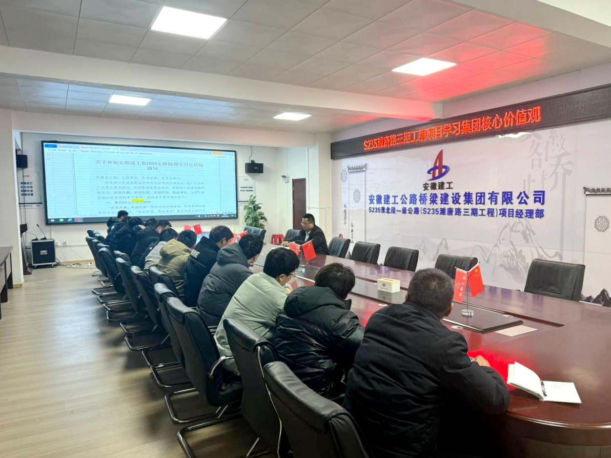 S235濉唐路三期項目組織職工學習集團核心價值觀,要求做到知行合一,融入實踐。