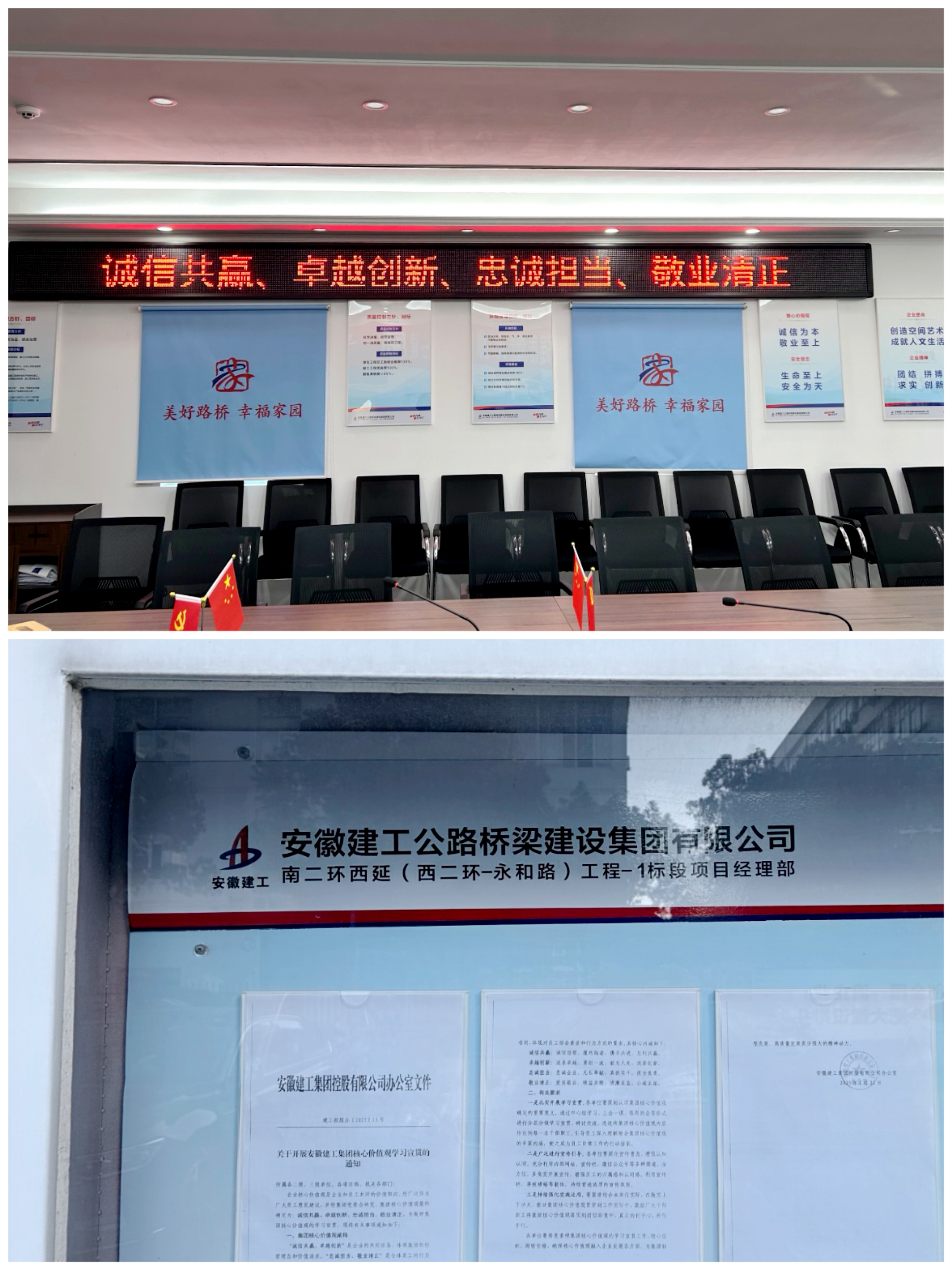 南二環(huán)西延項目利用電子屏和駐地宣傳欄對集團核心價值觀進行宣傳,營造良好氛圍。