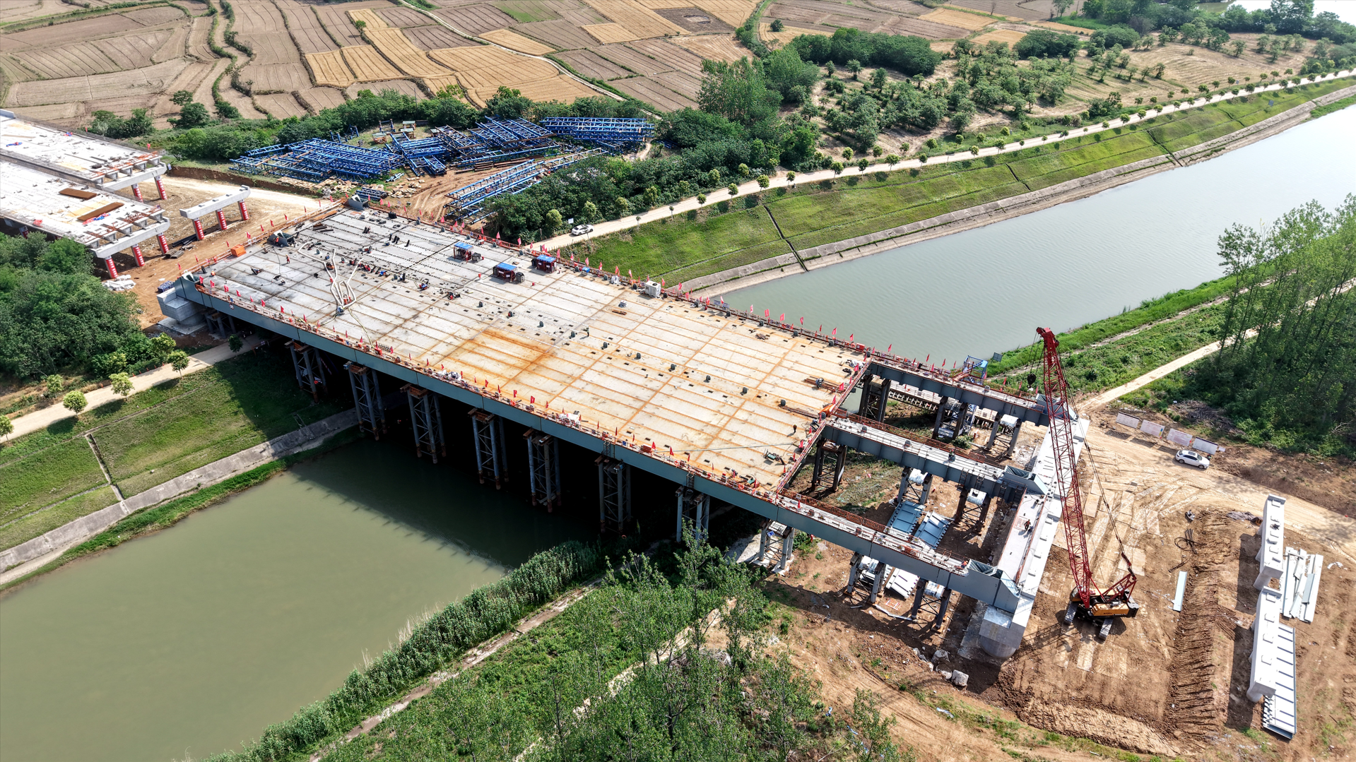奮戰(zhàn)二季度 沖刺“雙過半” | 淮桐高速合肥段路基2標(biāo)淠河總干渠大橋主縱梁順利合龍