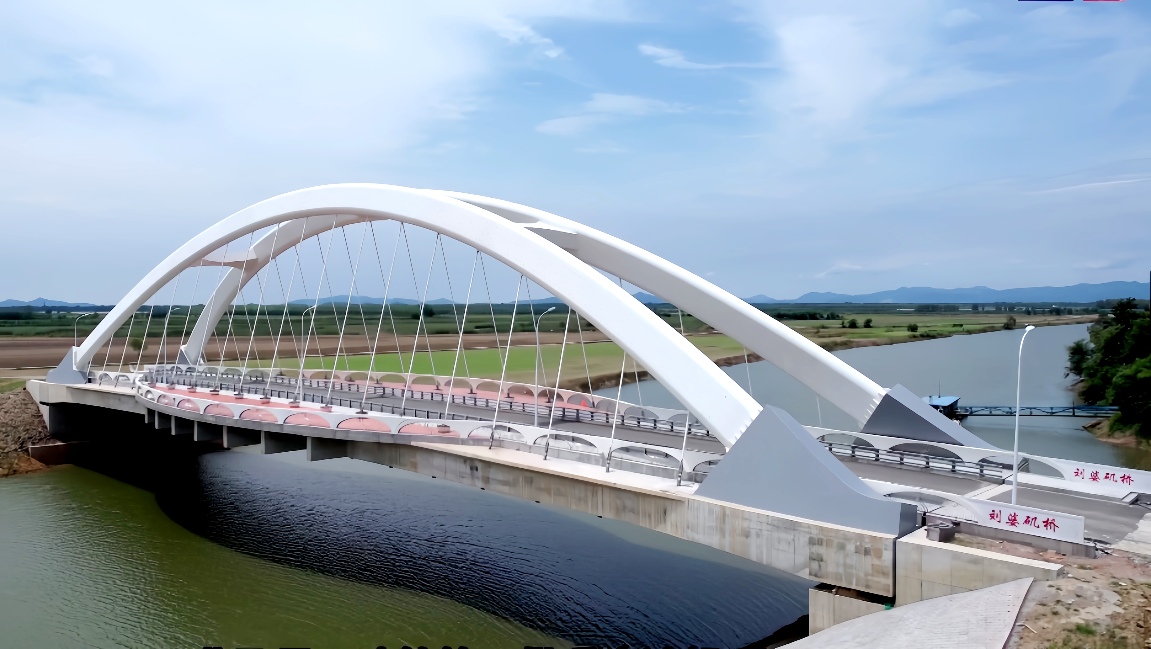 劉婆磯橋建設(shè)工程為新建的提籃拱橋,跨越秋浦河故道,整體造型別致,在橋面兩側(cè)中點分別建有半圓形觀景臺,于2023年3月建成通車,成為連接池州經(jīng)濟技術(shù)開發(fā)區(qū)和江口街道的重要紐帶,對促進濱江區(qū)生態(tài)修復具有重要意義。
