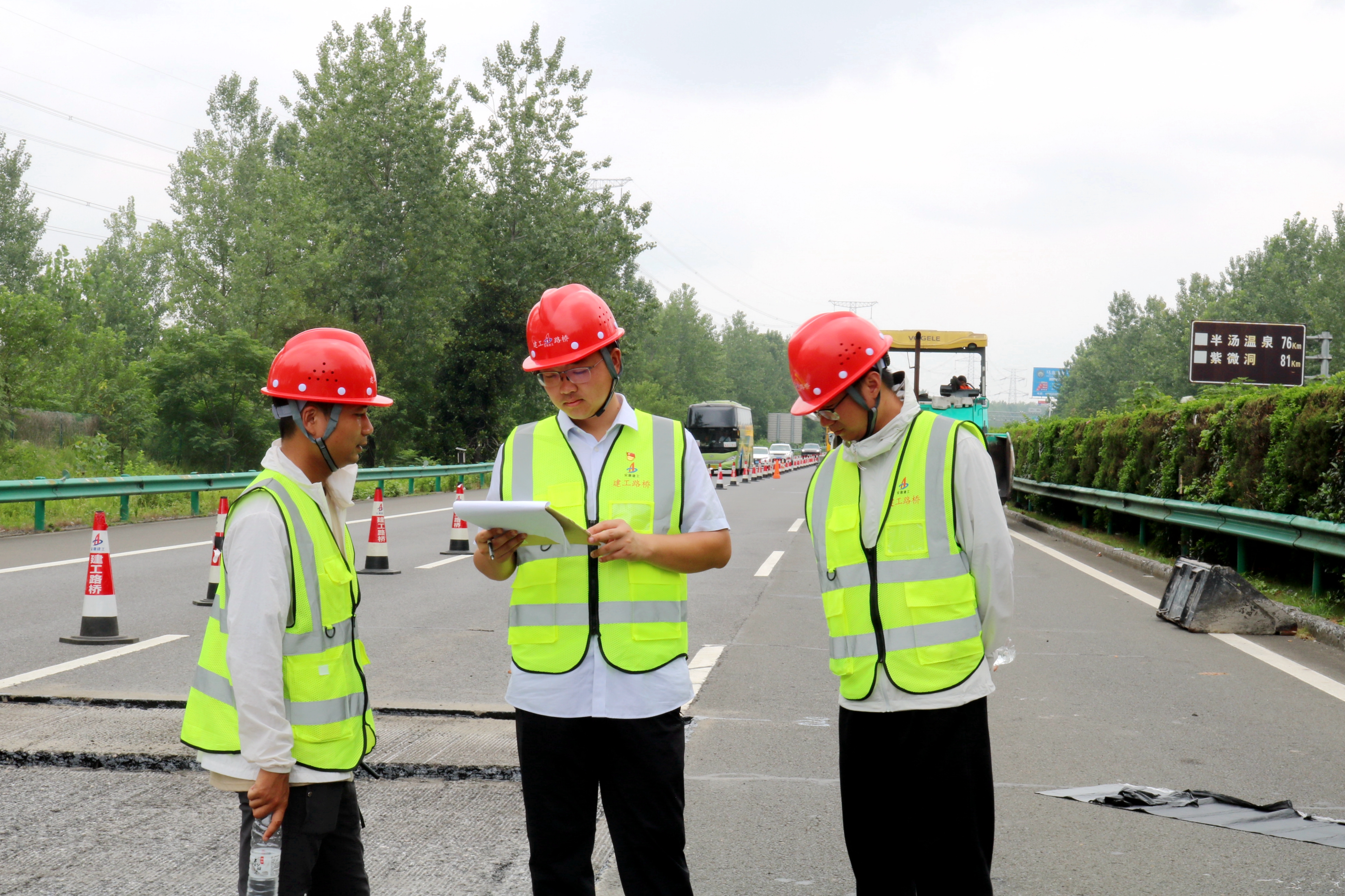 施工中,黨員“亮身份、作承諾、當(dāng)先鋒”,帶頭值守夜間施工、攻克技術(shù)堵點(diǎn)。為破解交通導(dǎo)改難題,團(tuán)隊(duì)發(fā)動(dòng)“頭腦風(fēng)暴”,多次實(shí)地踏勘周邊路網(wǎng),結(jié)合車流量大數(shù)據(jù)分析,深挖通行潛力,最終制定出最優(yōu)封閉施工方案。引入智能化監(jiān)測設(shè)備,實(shí)時(shí)監(jiān)控路面溫度、壓實(shí)度等指標(biāo),讓每一道工序都經(jīng)得起“數(shù)據(jù)檢驗(yàn)”。