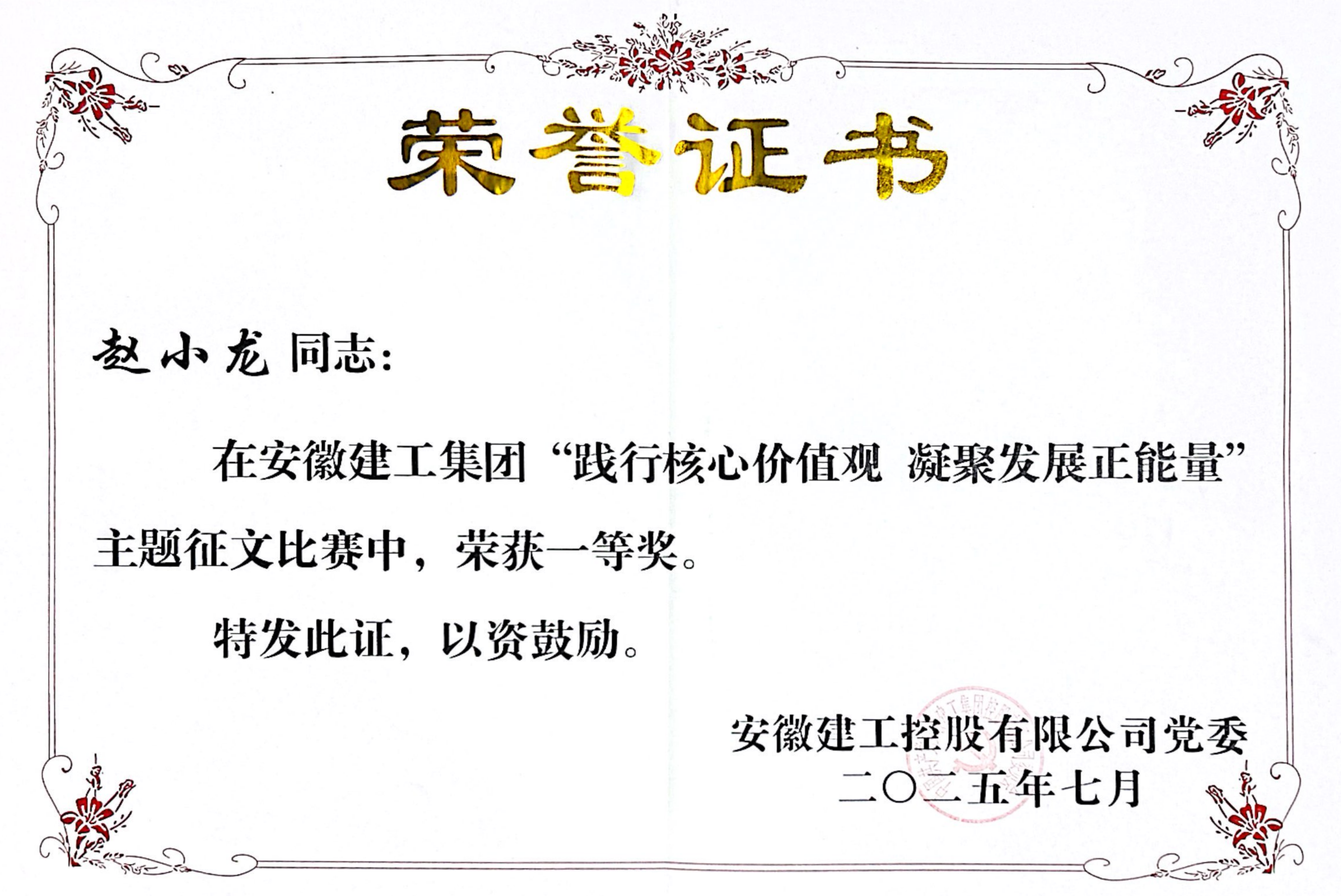 公司在集團(tuán)“踐行核心價值觀,凝聚發(fā)展正能量”主題征文比賽中榮獲一等獎