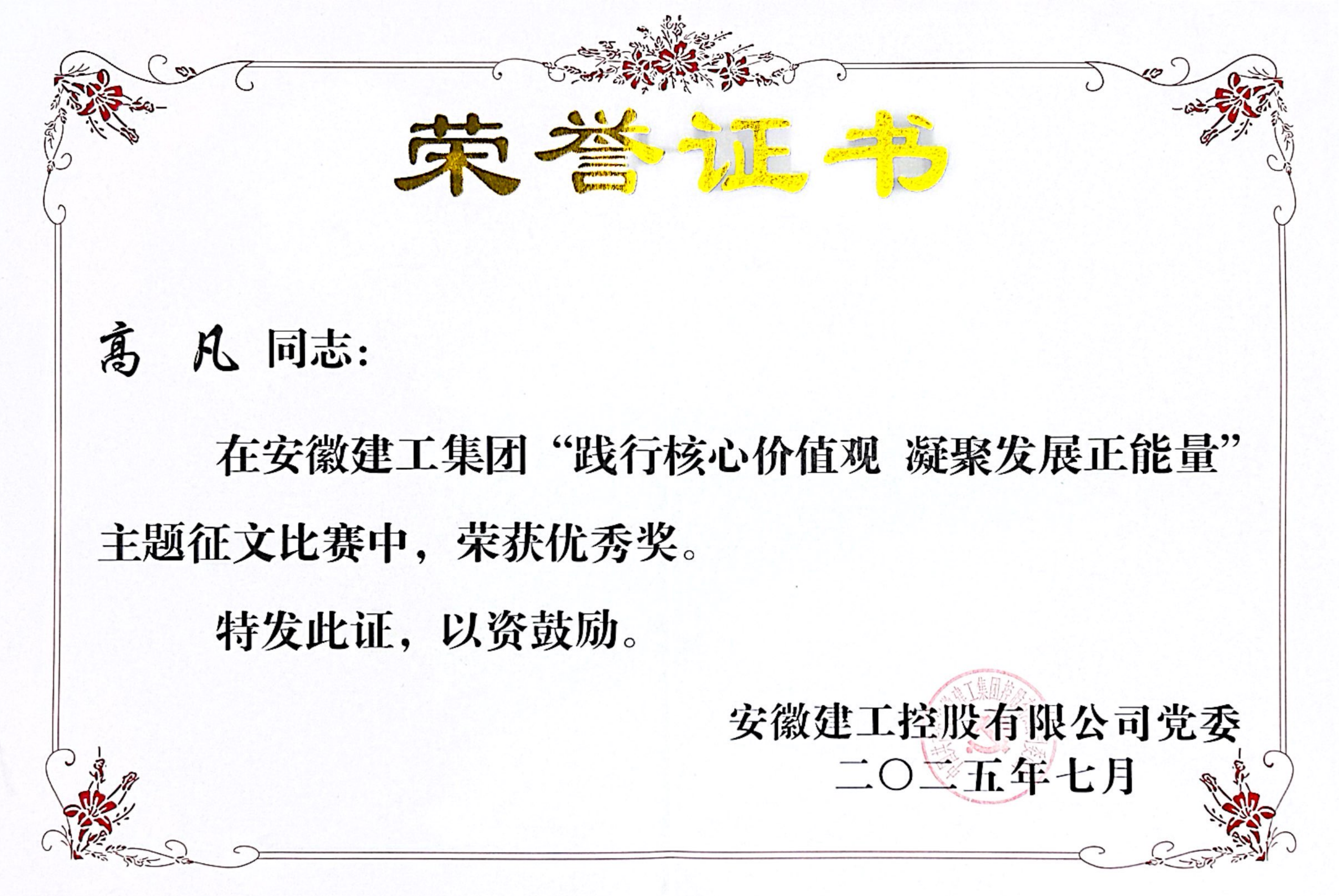 近日,集團(tuán)“踐行核心價值觀,凝聚發(fā)展正能量”主題征文比賽結(jié)果公布,公司報送的多個作品在數(shù)十篇優(yōu)秀作品中脫穎而出。其中,合肥分公司趙小龍同志作品《踐行核心價值觀,織就立體交通新篇章——安徽建工合肥新橋機(jī)場綜合交通中心建設(shè)紀(jì)實》斬獲一等獎,公路一公司丁自亮同志作品《戎裝換工服 丹心映初心——一名退役軍人的核心價值觀踐行之路》、橋梁公司高凡同志作品《經(jīng)緯縱橫處 燈火照長路——建工價值觀的泥土與鋼》榮獲優(yōu)秀獎。