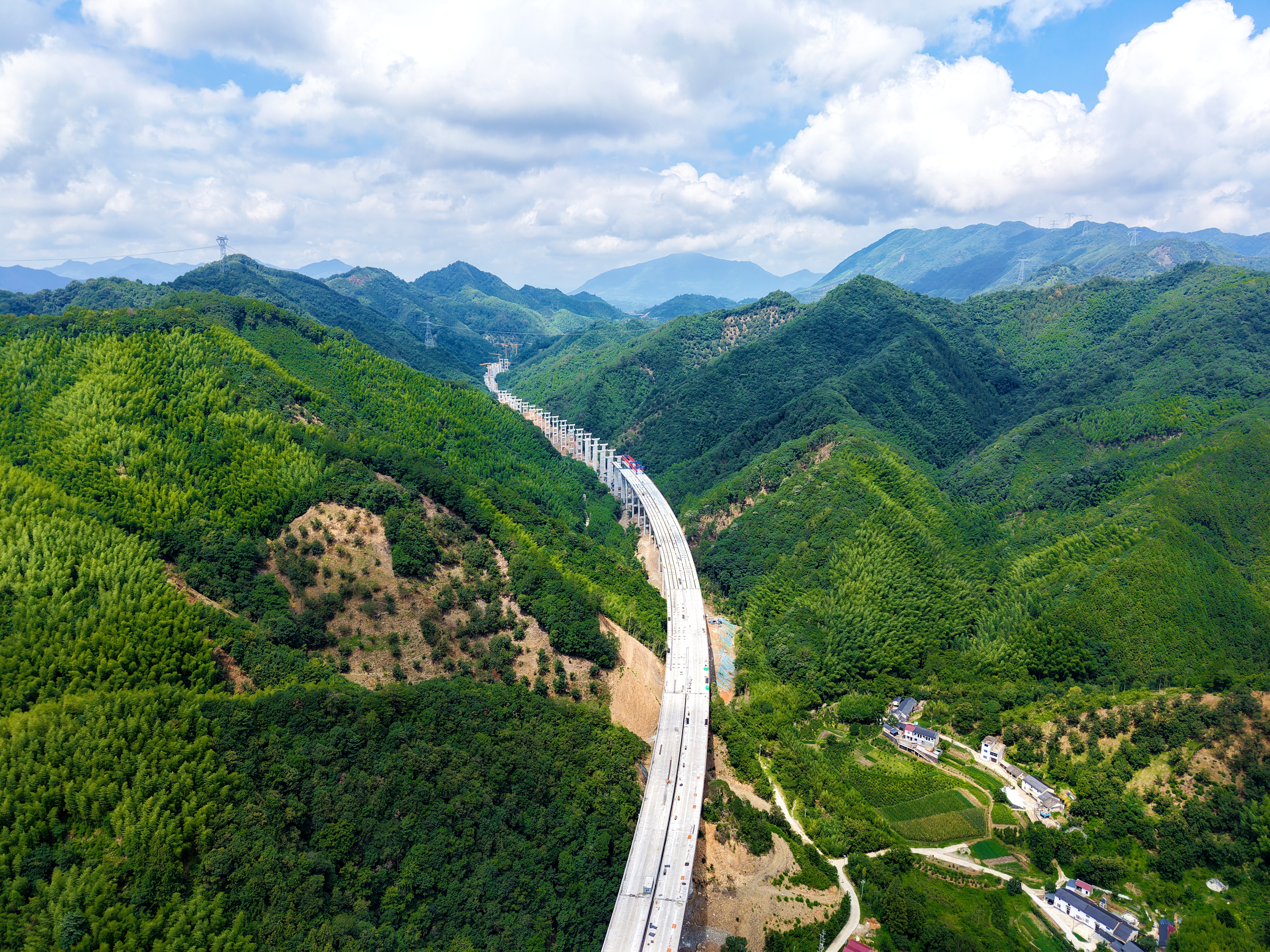 二季度以來,項目克服高空作業(yè)、樞紐導改、雨季汛期等挑戰(zhàn),統(tǒng)籌抓好進度、質量、安全等要素管控,提前完成全線橋梁下部結構施工、滿堂支架現(xiàn)澆箱梁施工等節(jié)點,控制性工程新嶺腳隧道實現(xiàn)全幅貫通。