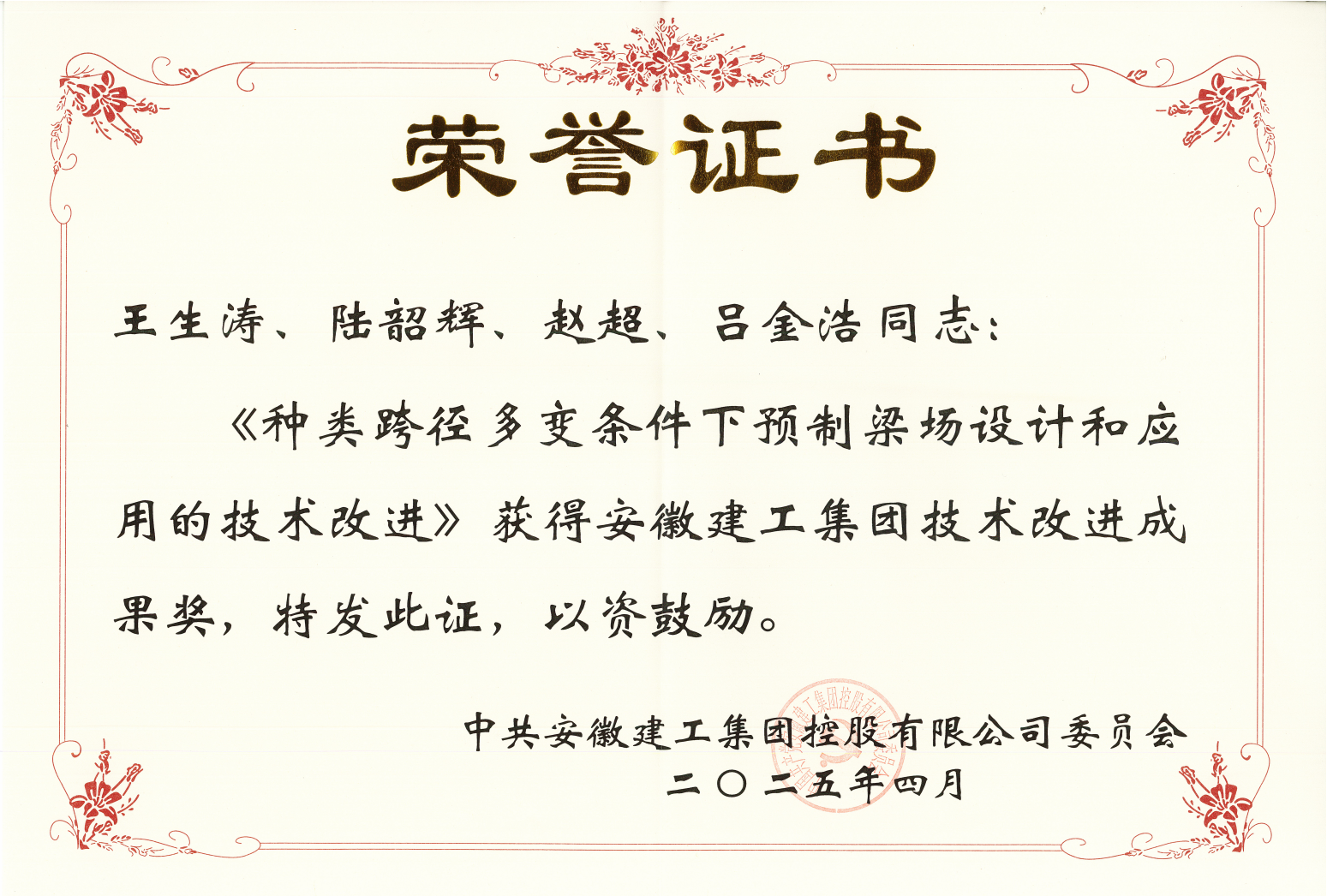 在預(yù)制梁施工中,項(xiàng)目涉及8種不同跨徑的箱梁生產(chǎn)。按照傳統(tǒng)工藝,需對(duì)應(yīng)建設(shè)8種專用臺(tái)座,不僅占用大量場(chǎng)地,還需投入額外成本,且臺(tái)座僅能適配單一跨徑箱梁,資源利用率極低。項(xiàng)目部技術(shù)團(tuán)隊(duì)通過(guò)對(duì)比不同跨徑箱梁的結(jié)構(gòu)參數(shù)、受力特點(diǎn),最終確定建設(shè)25米、40米兩種通用臺(tái)座。通過(guò)靈活調(diào)整模板支撐結(jié)構(gòu)、優(yōu)化鋼筋綁扎流程,使兩種臺(tái)座可完全適配8種跨徑箱梁的預(yù)制需求。此舉減少了6種專用臺(tái)座的建設(shè)投入,還節(jié)省施工用地約9.8畝,縮短工期15天,相關(guān)技術(shù)成果《種類跨徑多變條件下預(yù)制梁場(chǎng)設(shè)計(jì)和應(yīng)用的技術(shù)改進(jìn)》還榮獲集團(tuán)技術(shù)改進(jìn)獎(jiǎng)及安徽省重大合理化建議獎(jiǎng)。