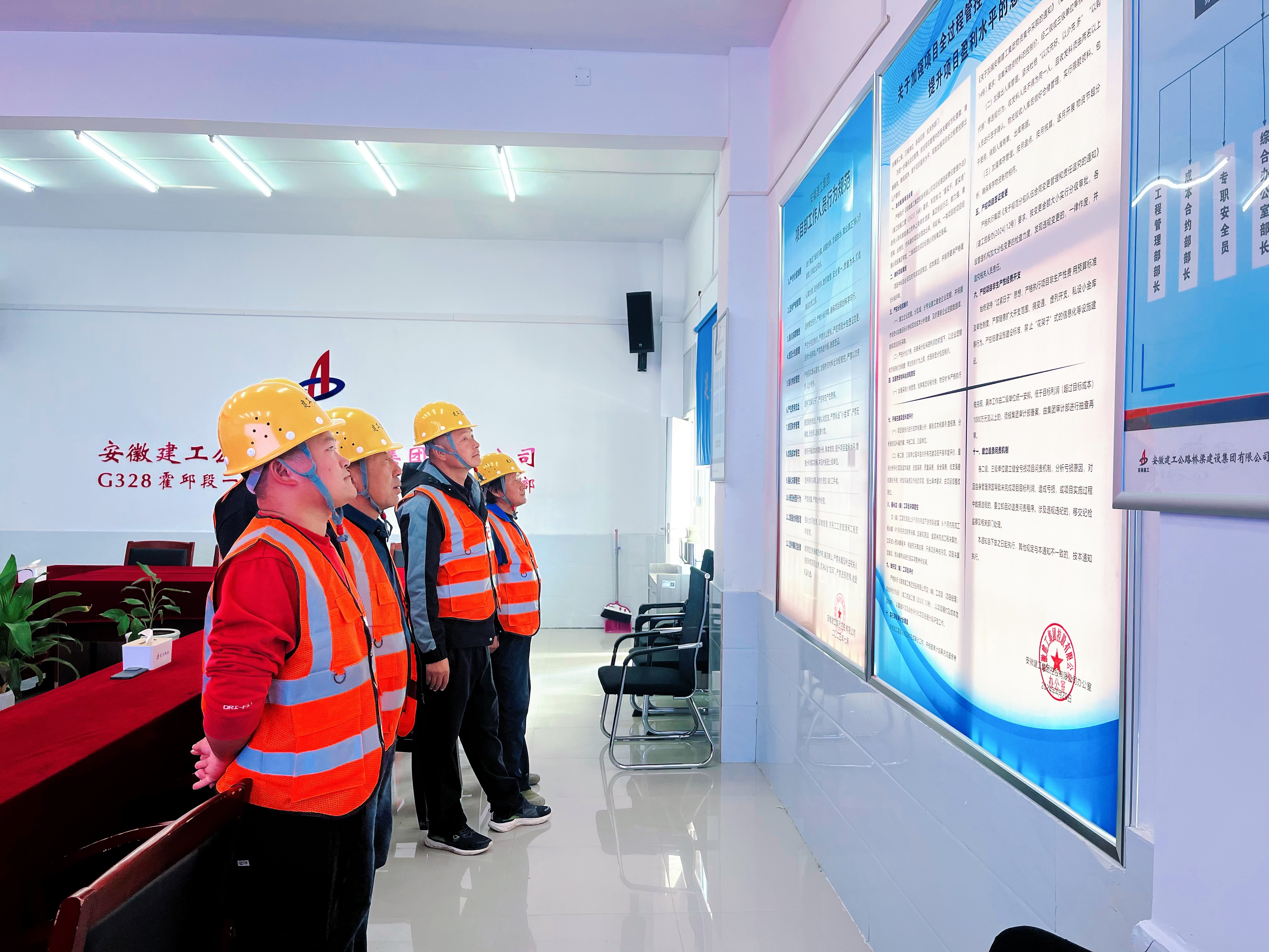 G328改建公路項目部系統(tǒng)整合集團、公司近三年來各類重要制度文件近70篇匯總成冊,搭配集團印發(fā)的項目管理制度學(xué)習手冊推動全員參與,全面學(xué)習;統(tǒng)一規(guī)格規(guī)范上墻《項目部工作人員行為規(guī)范》《關(guān)于加強項目全過程管控 堵塞漏洞 降低成本 提升項目盈利水平的意見》等核心規(guī)章制度,實現(xiàn)學(xué)習內(nèi)容可視可及。