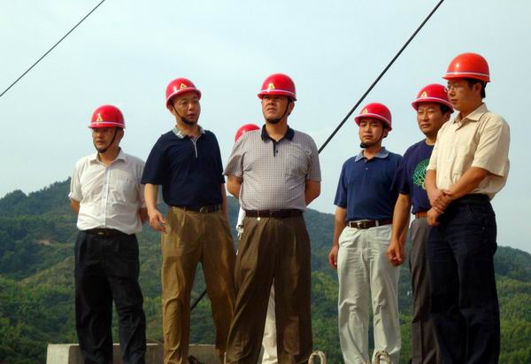 程廳長一行一到項目部就馬不停蹄地來到施工現(xiàn)場,一邊詢問施工進展情況,一邊現(xiàn)場查看和指導。程廳長在肯定項目前期安全工作成績的同時,對金桃大橋后期施工安全防范和安全措施提出了具體要求和指導意見。一是后期施工一定要把安全工作放在首位,工期必須服從安全、質量要求;二是要對纜索吊系統(tǒng)進行一次全面的安全隱患排查;三是要注意結構件堆放分布合理;四是要合理安排一線工人作息時間,避開高溫時間施工,以防中暑等;程廳長還對安徽路橋在金桃大橋建設中做出的努力給予了高度評價。