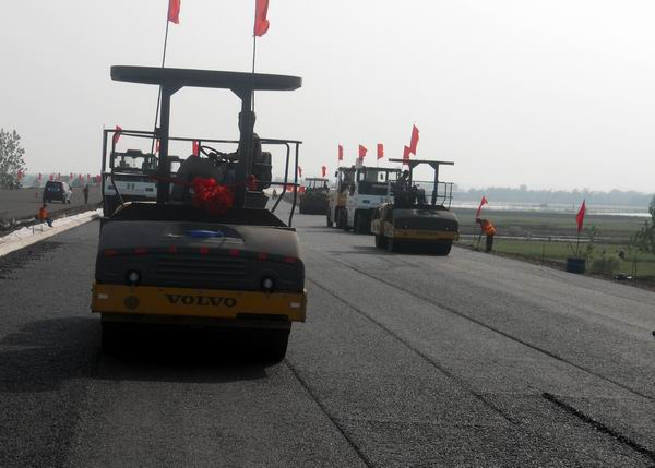 蚌淮路面01標(biāo)AC-25瀝青砼下面層試驗(yàn)段成功鋪筑