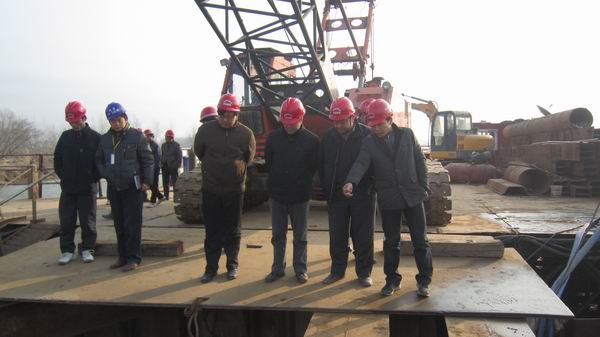 殷書記一行先后到箱梁預制場、鋼筋加工場、主墩鋼圍堰進行了現(xiàn)場查看,并聽取了該項目負責人關于項目施工管理情況的匯報。在座談會上,殷書記對項目部前期取得的成績給予了充分肯定,也指出了存在的不足。周科長就實地查看的情況進行了總結,指出從目前檢查情況來看,路基11標在施工質(zhì)量上是下了功夫的,并鼓勵大家再接再厲,安全、優(yōu)質(zhì)、高效地完成這座特大橋的建設。