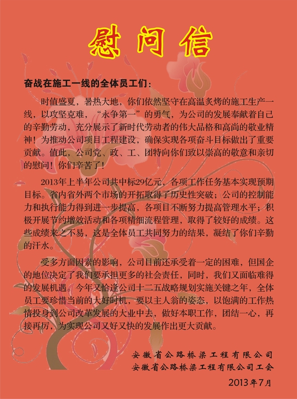 給一線(xiàn)員工的慰問(wèn)信