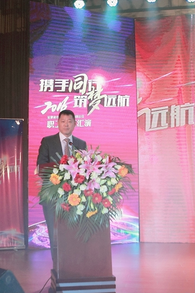 演出現(xiàn)場華燈璀璨,座無虛席,氣氛喜慶熱烈。匯演正式開始前,公司董事長、總經(jīng)理孫學軍發(fā)表了熱情洋溢的致辭。他首先代表公司向蒞臨現(xiàn)場的嘉賓及長期以來堅持在公司各個崗位的員工及家屬,致以誠摯的問候和新春的美好祝愿,向默默奉獻,為路橋事業(yè)奠基的前輩們致以崇高的敬意。指出,2015年,是宏觀形勢錯綜復雜的一年,也是公司成績斐然的一年,在建工集團的正確領導下,全體員工凝心聚力,開拓奮進,取得了驕人的業(yè)績。充滿機遇和挑戰(zhàn)的“十三五”已經(jīng)開局,全體路橋人要秉承優(yōu)良傳統(tǒng),凝心聚力,同舟共濟,譜寫安徽路橋新的輝煌。