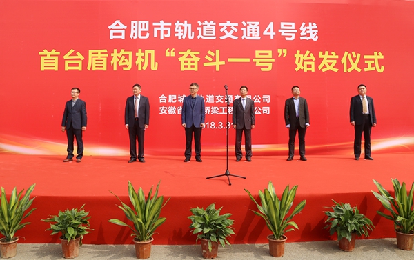 陽春三月生機(jī)勃發(fā),奮斗一號掘進(jìn)始發(fā)。3月31日上午,公司首臺盾構(gòu)機(jī)“奮斗一號”在軌道交通4號線1標(biāo)長寧大道站順利始發(fā),標(biāo)志著合肥軌道交通4號線正式進(jìn)入盾構(gòu)施工階段。合肥市軌道公司總經(jīng)理羅斌,安徽建工集團(tuán)副總經(jīng)理王厚良,公司董事長、黨委書記、總經(jīng)理孫學(xué)軍等領(lǐng)導(dǎo)和參建單位代表出席始發(fā)儀式。10時(shí)16分,羅斌宣布“奮斗一號”正式始發(fā)。儀式結(jié)束后,與會領(lǐng)導(dǎo)與專家深入始發(fā)現(xiàn)場、管片存放區(qū)檢查指導(dǎo)。