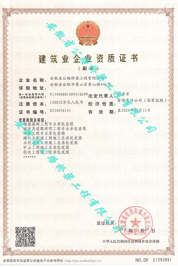 近年來,公司不斷豐富企業(yè)資質(zhì),提高已有資質(zhì)等級(jí),增加新業(yè)務(wù)資質(zhì),提高企業(yè)核心競(jìng)爭力,擴(kuò)大市場(chǎng)參與面,由傳統(tǒng)的單一交通基礎(chǔ)設(shè)施施工企業(yè)向多元化、寬領(lǐng)域建筑的方向轉(zhuǎn)變,努力實(shí)現(xiàn)打造省內(nèi)龍頭、國內(nèi)知名總承包施工企業(yè)的奮斗目標(biāo)。