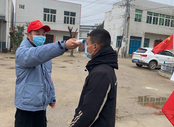 中共黨員董峰是興贛北延A6標質(zhì)檢部副部長,他的家鄉(xiāng)在湖北省孝感市大悟縣呂王鎮(zhèn)董灣村,是全國疫情重災區(qū)。疫情發(fā)生后,他積極響應號召,主動請戰(zhàn),申請加入到當?shù)氐目埂耙摺钡谝痪€。至今,他已累計檢查來往群眾640人次,每天統(tǒng)計每家每戶所需生活物資并陸續(xù)送上門,在面對群眾的不理解時,耐心溝通解釋,被董灣村稱贊為最美“逆行者”。