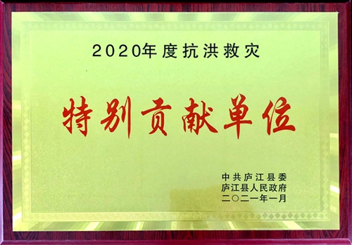 近日,廬江縣抗擊新冠肺炎疫情、抗洪救災表彰大會召開,公司被授予2020年度“抗洪救災特別貢獻單位”榮譽稱號。