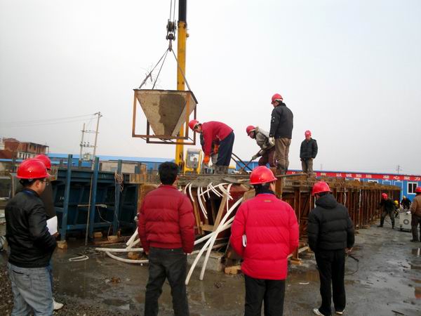 我部人員自正月初八進(jìn)場(chǎng)以來(lái),克服近半個(gè)月的連續(xù)陰雨天氣,精心準(zhǔn)備,合理組織,完成了預(yù)制場(chǎng)建設(shè)、材料進(jìn)場(chǎng)、設(shè)備標(biāo)定調(diào)試、標(biāo)準(zhǔn)實(shí)驗(yàn)等一系列工作,從而保證了此次箱梁的順利澆筑。此次澆筑,是我部拌合站建成以來(lái),首次投入正式結(jié)構(gòu)工程的生產(chǎn),也拉開了下一步規(guī)模生產(chǎn)的序幕。