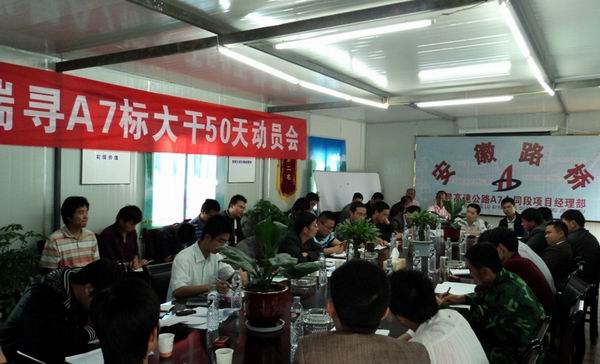 會議首先下達了大干50天的施工任務(wù)目標(biāo),并公布了相應(yīng)獎懲措施,要求各施工班組務(wù)必按質(zhì)按時完成施工任務(wù)。隨后,RA3駐地辦駐地工程師吳勝和A7監(jiān)理組組長萬軍分別對大干50天作出指示。最后,項目經(jīng)理劉大雷從工程進度、質(zhì)量和安全等方面進行了總結(jié)并提出要求,強調(diào)了施工過程中安全、質(zhì)量、進度的重要性,三者要同時抓,要加強環(huán)保與文明施工,建立一個和諧的施工環(huán)境。