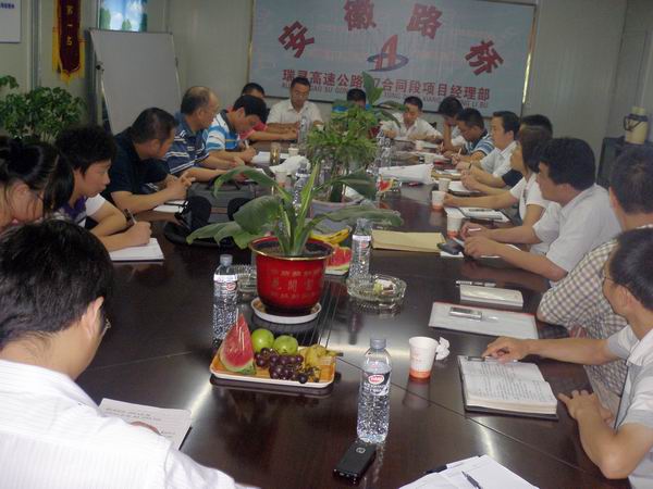 下午,考核組和項目部主要負責人以及項目各部門負責人在項目部會議室召開檢查考核反饋會議。會上,劉經理將瑞尋高速A7標的工程量完成情況、進度、安全、質量、計劃執(zhí)行及成本管理等情況向考核組人員作了匯報,同時指出了我項目部存在的一些問題。接著,考核組成員分別將各項檢查情況反饋給我項目部,指出了我項目在安全管理、財務、核算審計、企業(yè)發(fā)展、人力資源、材料管理、機械設備管理、項目管理、項目質量等方面存在的問題以及解決措施。