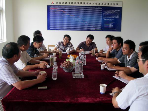 結(jié)束了對(duì)前后場(chǎng)的現(xiàn)場(chǎng)視察后,曹部長(zhǎng)一行在項(xiàng)目部會(huì)議室召開了工作座談會(huì)議。會(huì)上交投集團(tuán)養(yǎng)護(hù)部曹部長(zhǎng)、界阜蚌改建辦張主任、蕪宣管理處養(yǎng)護(hù)部張部長(zhǎng)、駐地辦劉組長(zhǎng)作為代表分別就目前施工中質(zhì)量控制的要點(diǎn)以及施工工序中需注意的幾個(gè)方面做了發(fā)言,并就此進(jìn)行了深入的交流與探討。