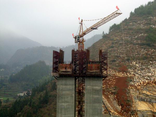 貴州水盤19標(biāo)巖子腳特大橋主墩0#塊進(jìn)行首次澆筑
