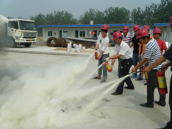 鳳陽縣消防支隊派出業(yè)務(wù)骨干進行培訓(xùn)和現(xiàn)場指導(dǎo)演練,重點對施工現(xiàn)場安全的隱患點做了詳細(xì)分析,對消防滅火器材的種類、型號、使用方法進行了講解和現(xiàn)場指導(dǎo)。本次消防演練由技術(shù)指揮組、搶救組組成。參加培訓(xùn)人員在掌握基本常識基礎(chǔ)上對施工現(xiàn)場所配備的干粉滅火器進行實際操作,進行滅火演練。