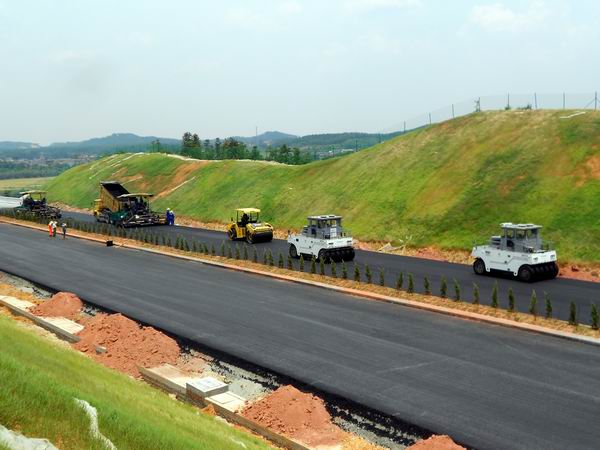 上午9時(shí),各項(xiàng)工作準(zhǔn)備就緒,隨著項(xiàng)目經(jīng)理一聲令下,拌合樓、攤鋪機(jī)、壓路機(jī)等設(shè)備全部運(yùn)轉(zhuǎn)起來(lái)。現(xiàn)場(chǎng)施工人員各司其職,井然有序。隨著一車車混合料倒進(jìn)攤鋪機(jī)料斗,一段平整的瀝青中面層呈現(xiàn)在眼前。經(jīng)過(guò)壓路機(jī)的反復(fù)碾壓,最終經(jīng)現(xiàn)場(chǎng)試驗(yàn)檢測(cè),各項(xiàng)數(shù)據(jù)均符合施工規(guī)范要求,為下階段大面積施工奠定了基礎(chǔ)。