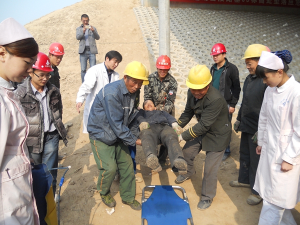 演練開始,中山醫(yī)院外科何主任在項(xiàng)目部會(huì)議室給參演人員講解了一些外科傷害常識(shí)及應(yīng)急救援措施,外科醫(yī)生朱醫(yī)生在施工現(xiàn)場(chǎng)向大家模擬了救援方法、動(dòng)作,并講解了注意事項(xiàng)。本次演練在項(xiàng)目部各部門及橋梁施工隊(duì)的積極參與和配合下取得了圓滿成功,提高了該項(xiàng)目部應(yīng)急響應(yīng)能力。